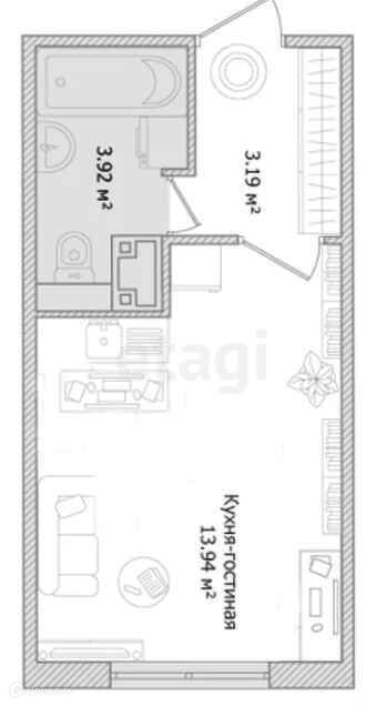 Общая площадь 18.2 м2