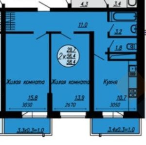 Общая площадь 56.3 м2