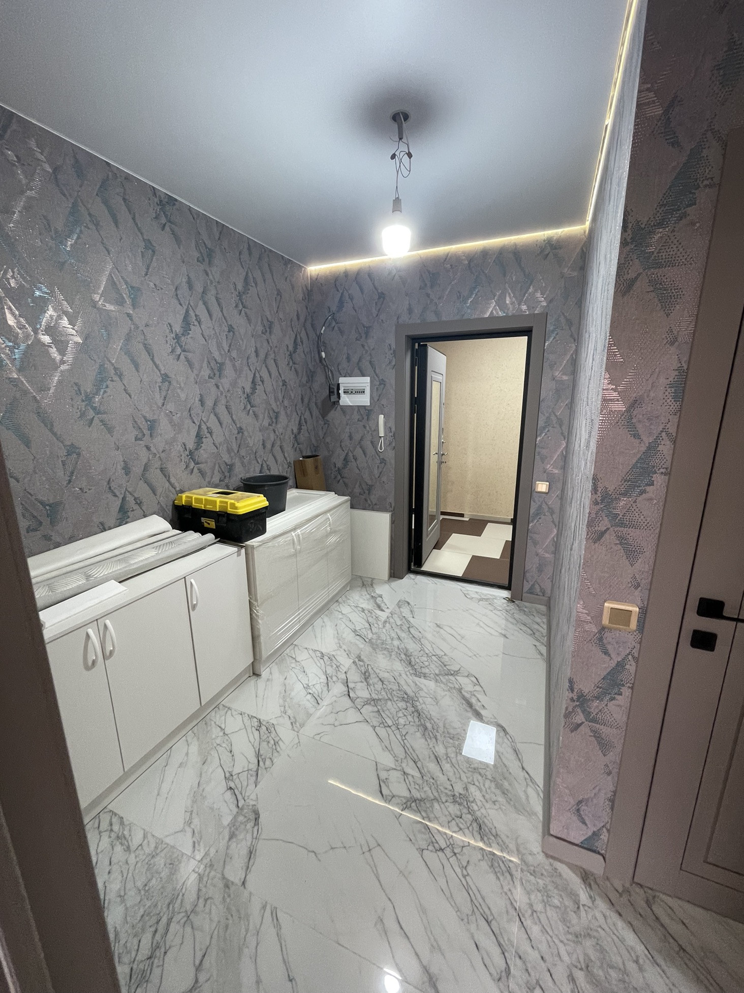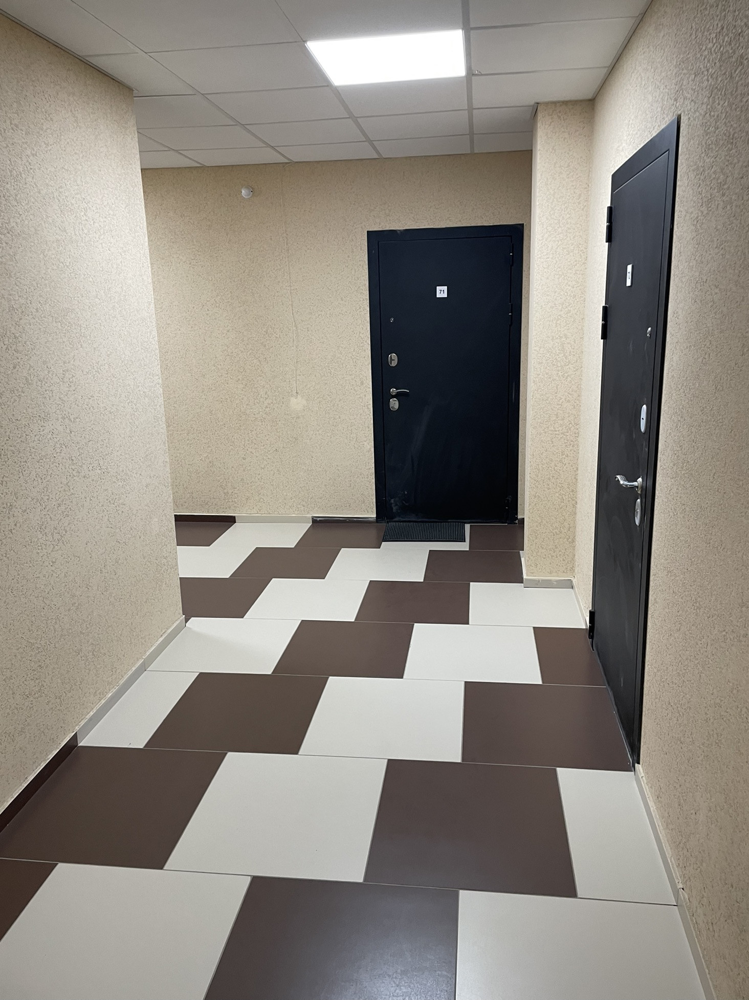Лестничная площадка и подъезд, чистые и уютные, два лифта (грузовой и пассажирский).