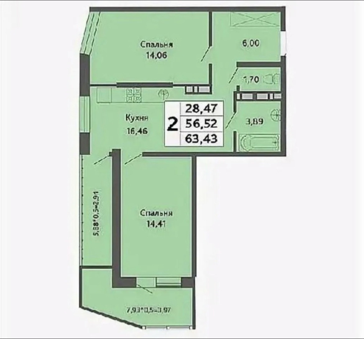 Площадь кухни 16.46 м2