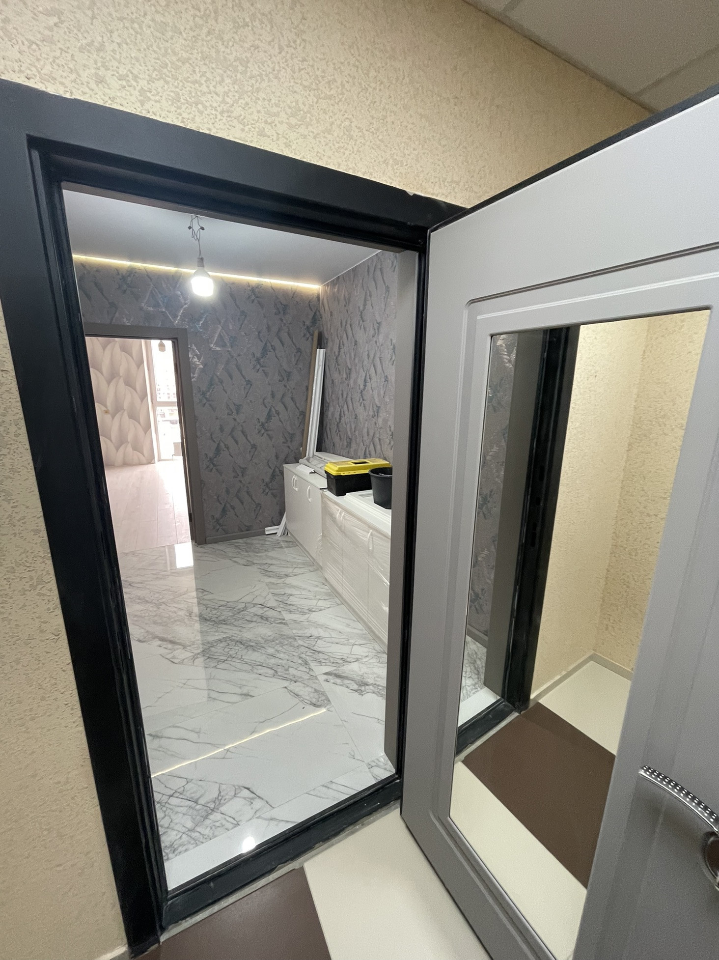 Входная дверь в подъезд на цифровом замке с домофоном.