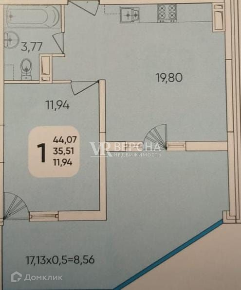 Общая площадь 44.07 м2