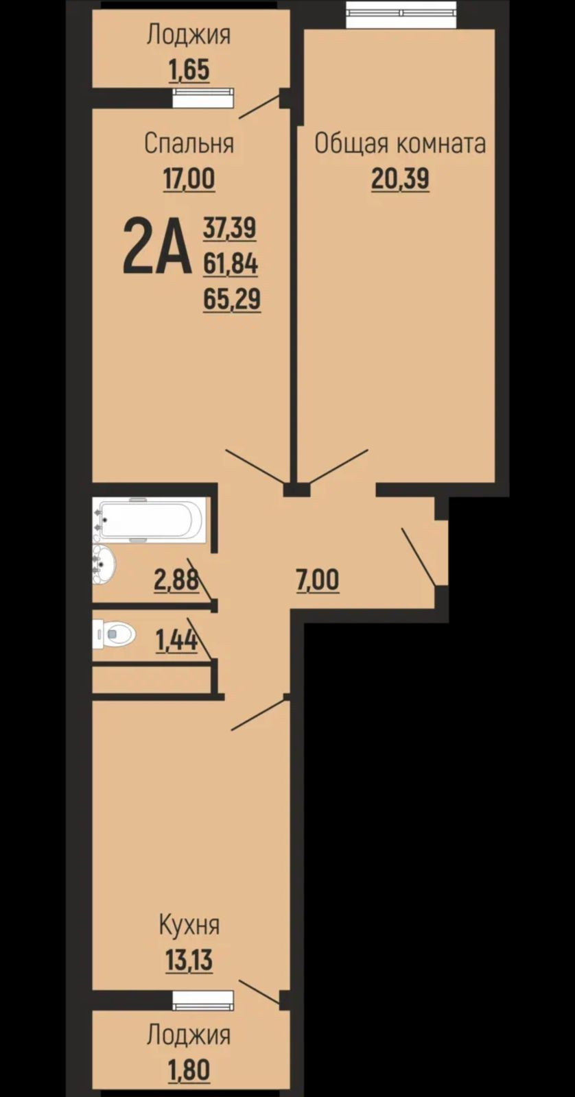 Общая площадь 65 м2