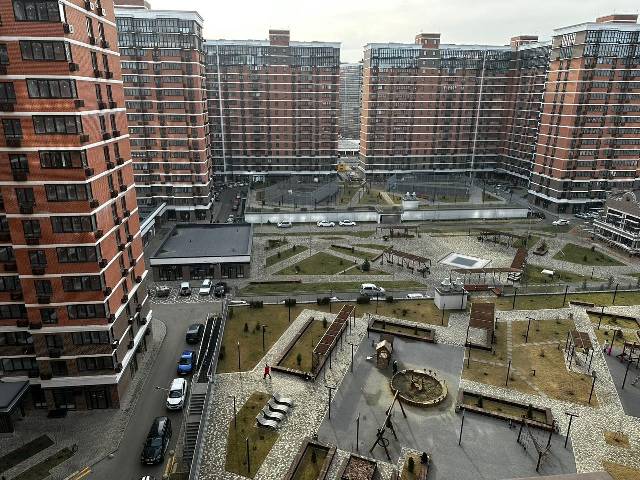 во дворе подземный паркинг .