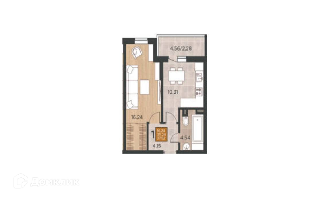 1-комнатная квартира, 38.55 м2, этаж 4 / 17, на продажу в Краснодаре, Командорская улица, 15