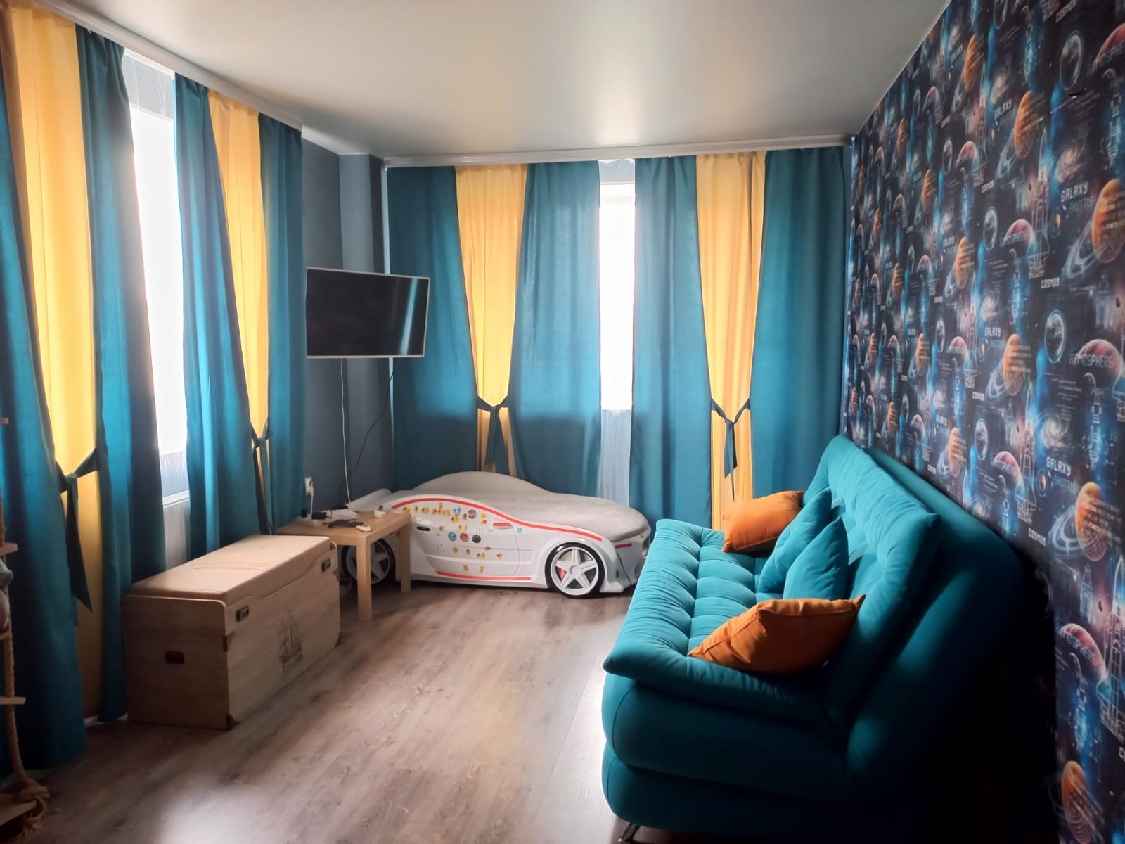 Удобная планировка с просторными комнатами, балкон застеклен. В квартире сделан Ремонт, остаётся вся Мебель и Техника.