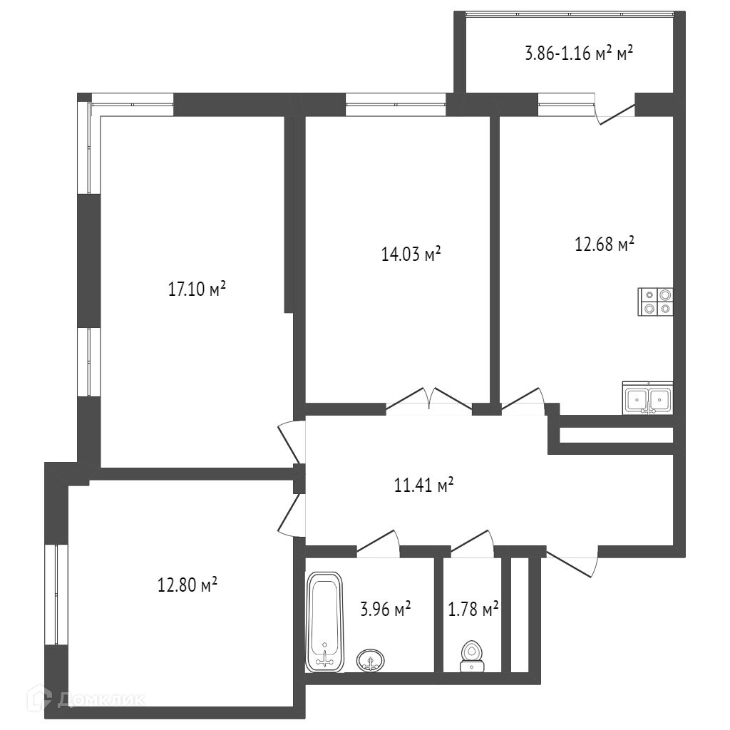 Площадь кухни 12.6 м2