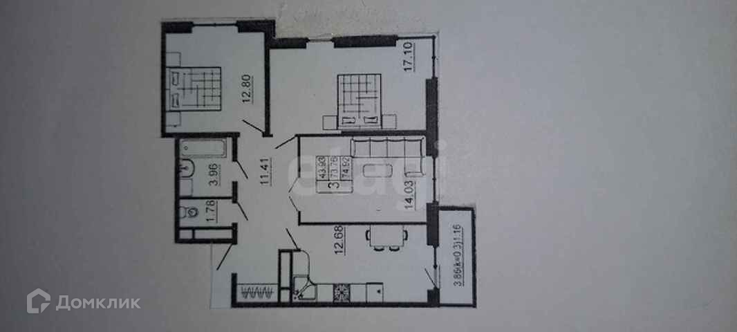Общая площадь 75.9 м2