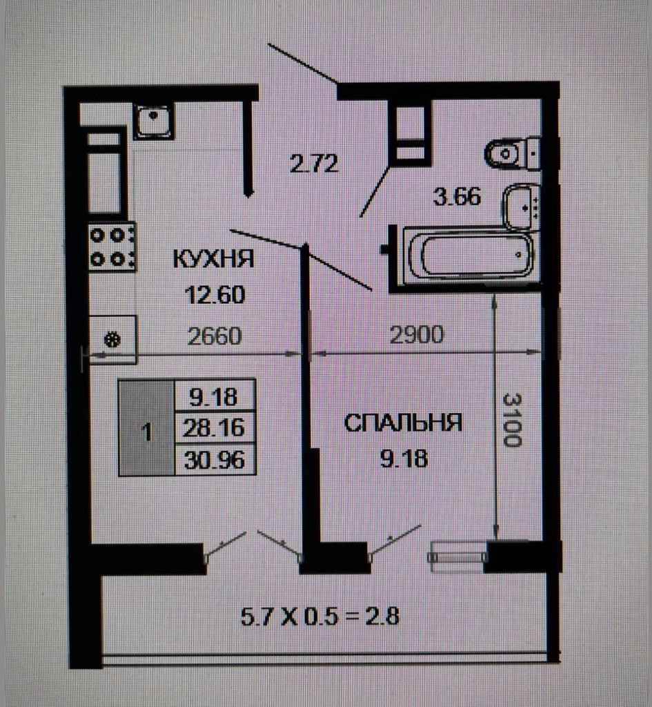 Балкон, лоджия 1 балкон