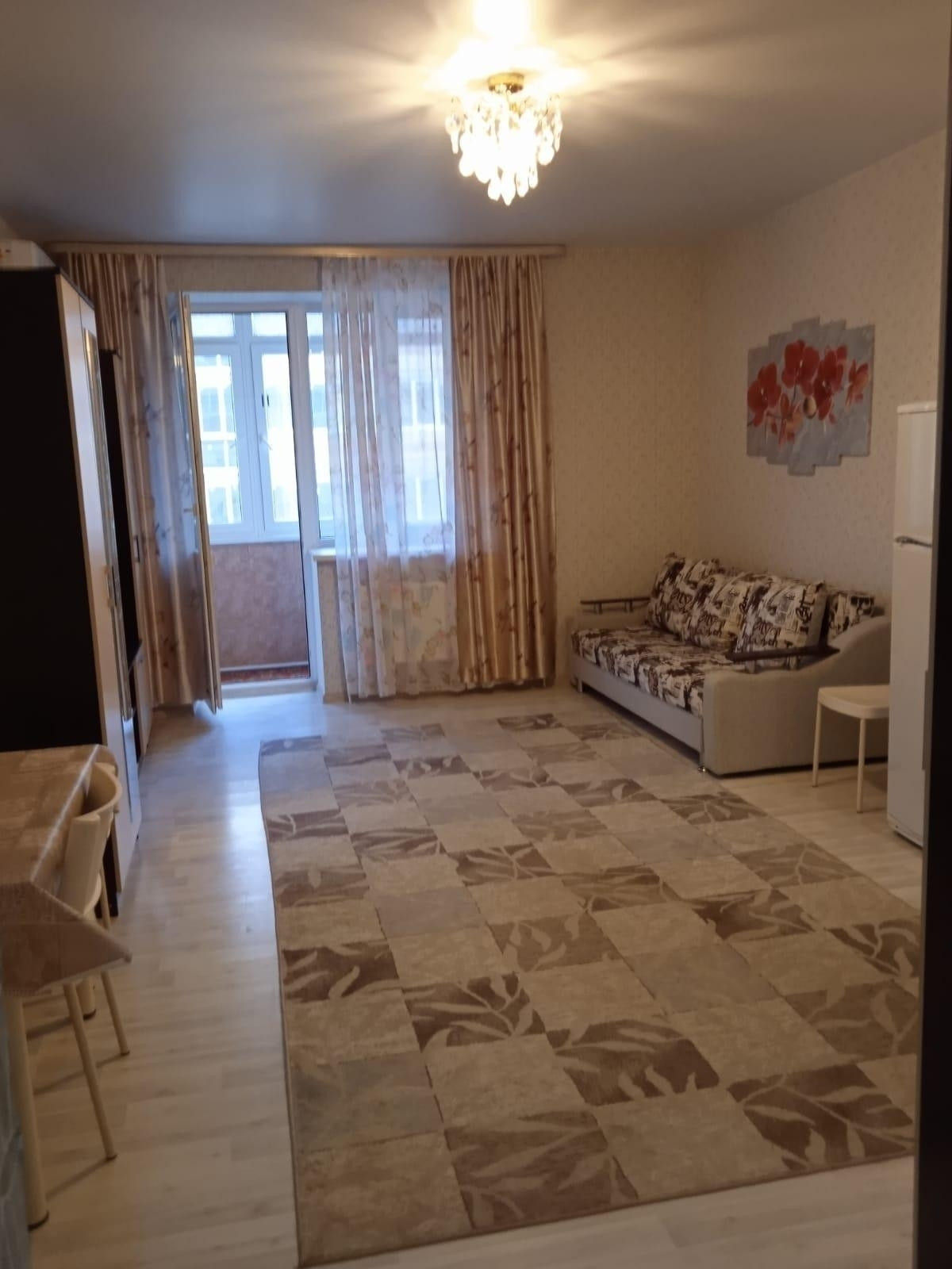 квартира с тудия с большим болконом   ремон мебель, уютная светлая тёплая, двор закрыт  большая детская площадка