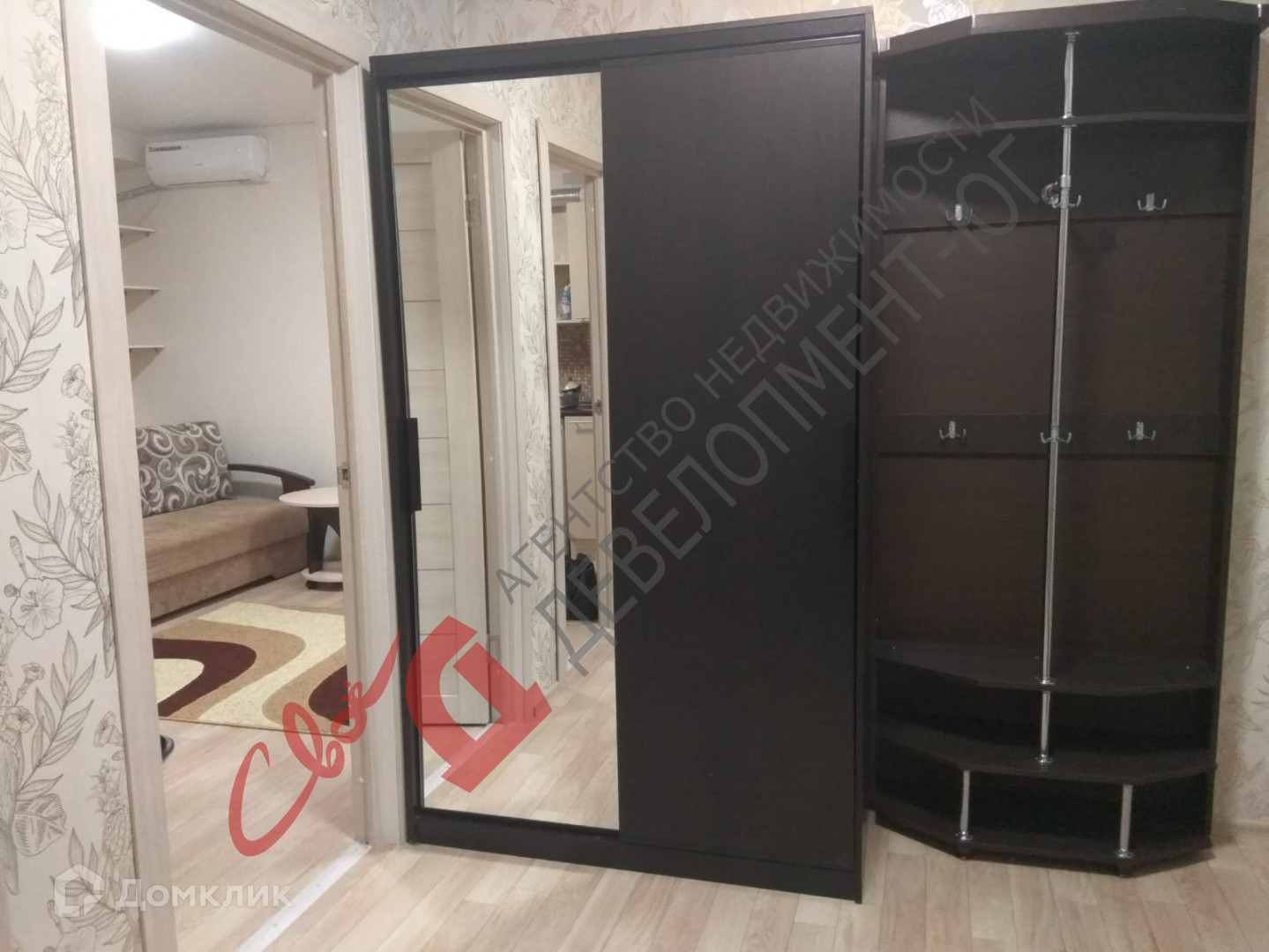 в просторной прихожей свободно размещается шкаф