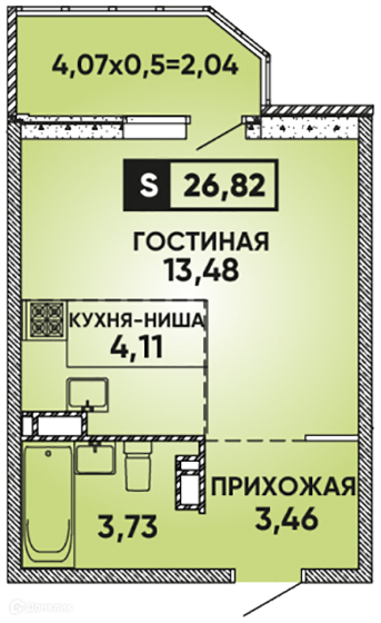 Общая площадь 26.8 м2