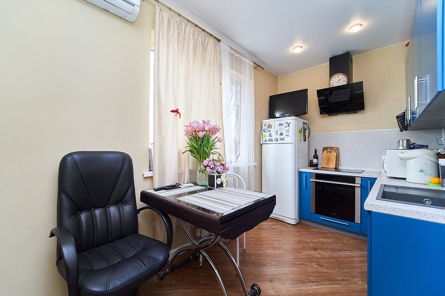В квартире хороший ремонт, остается почти вся мебель. Уютная и светлая квартира с прекрасным видом. Рядом вся инфраструктура, необходимая для комфортной жизни.