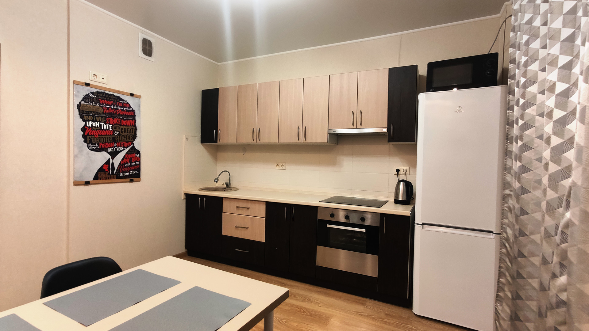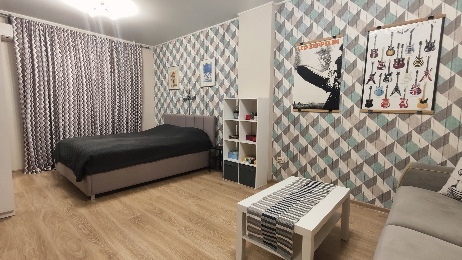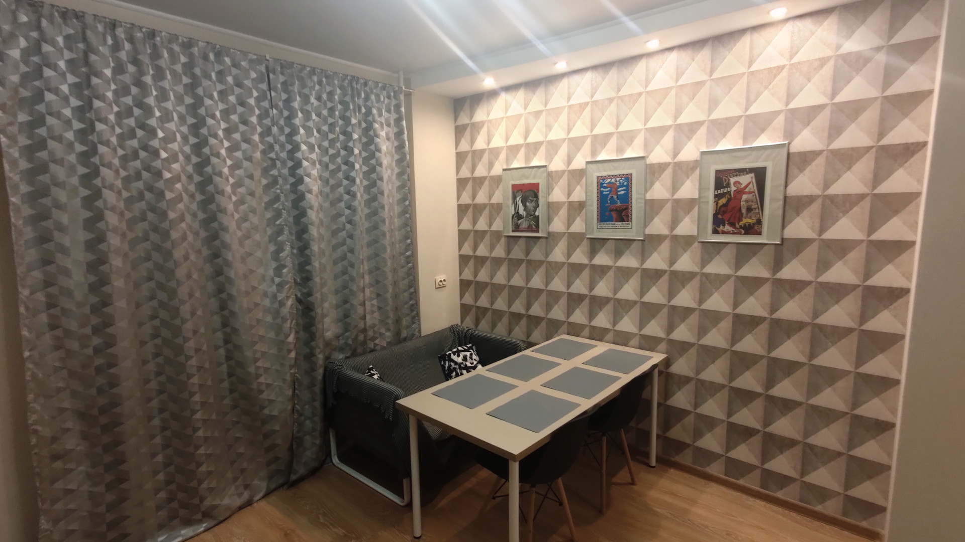 Качественный современный ремонт сделан недавно и "под себя", установлена новая металлическая входная дверь с хорошей звукоизоляцией, в комнате предусмотрены гостиная и спальная зона, просторная кухня имеет выход на утепленный и застекленный балкон, оснащенный теплым полом.