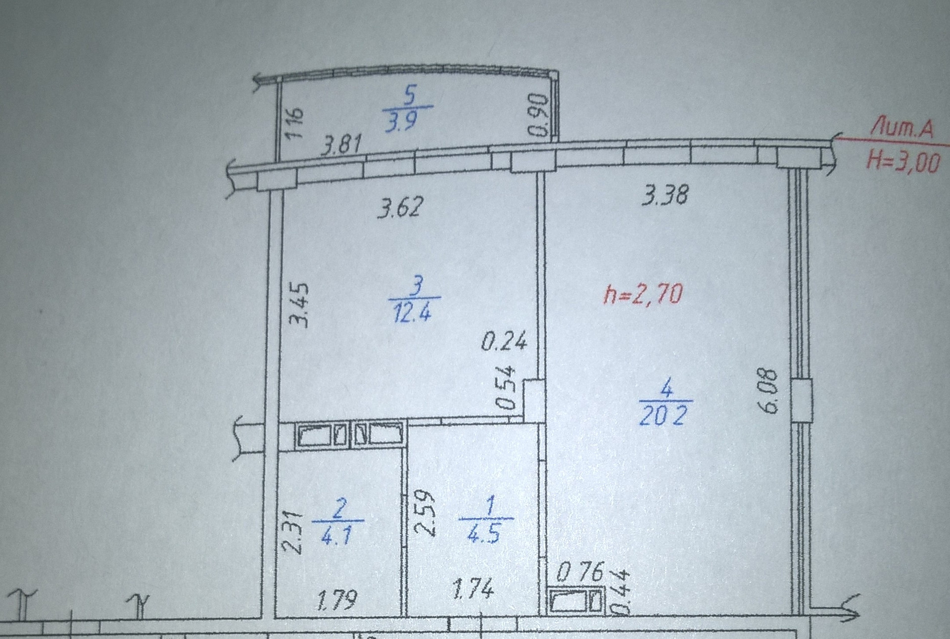 Квартира общей площадью 45,1 кв.м (без балкона - 41,2 кв.м), площадь жилой комнаты - 20,2 кв.м, кухни - 12,4 кв.м., санузел совмещенный, высота потолков - 2,70 м., очень удачная планировка, квартира светлая, просторная.
