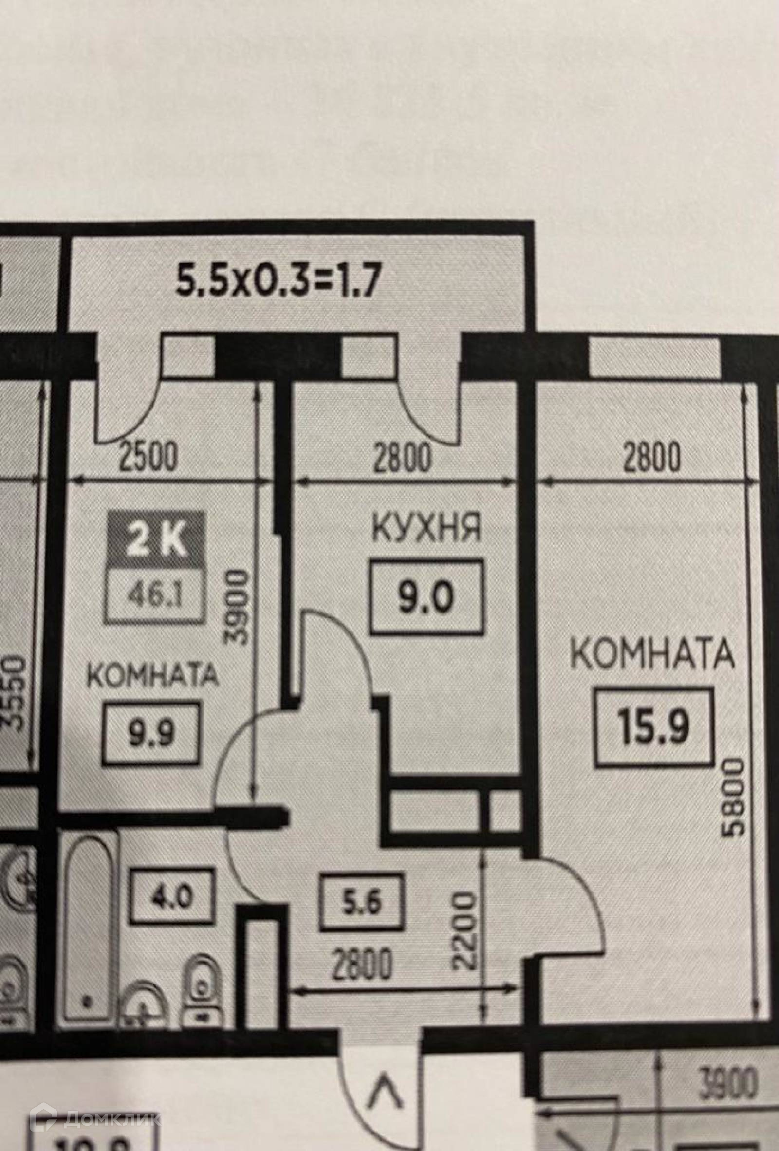 Общая площадь 46.1 м2