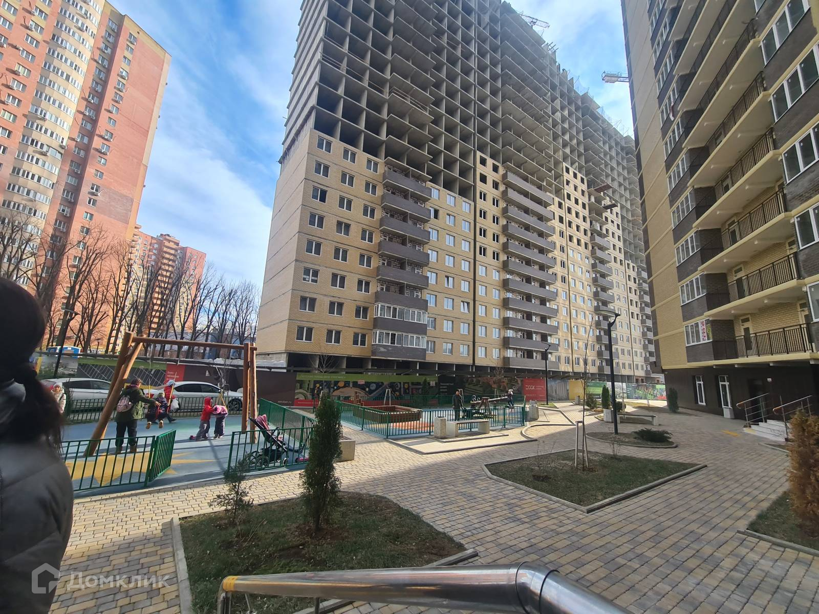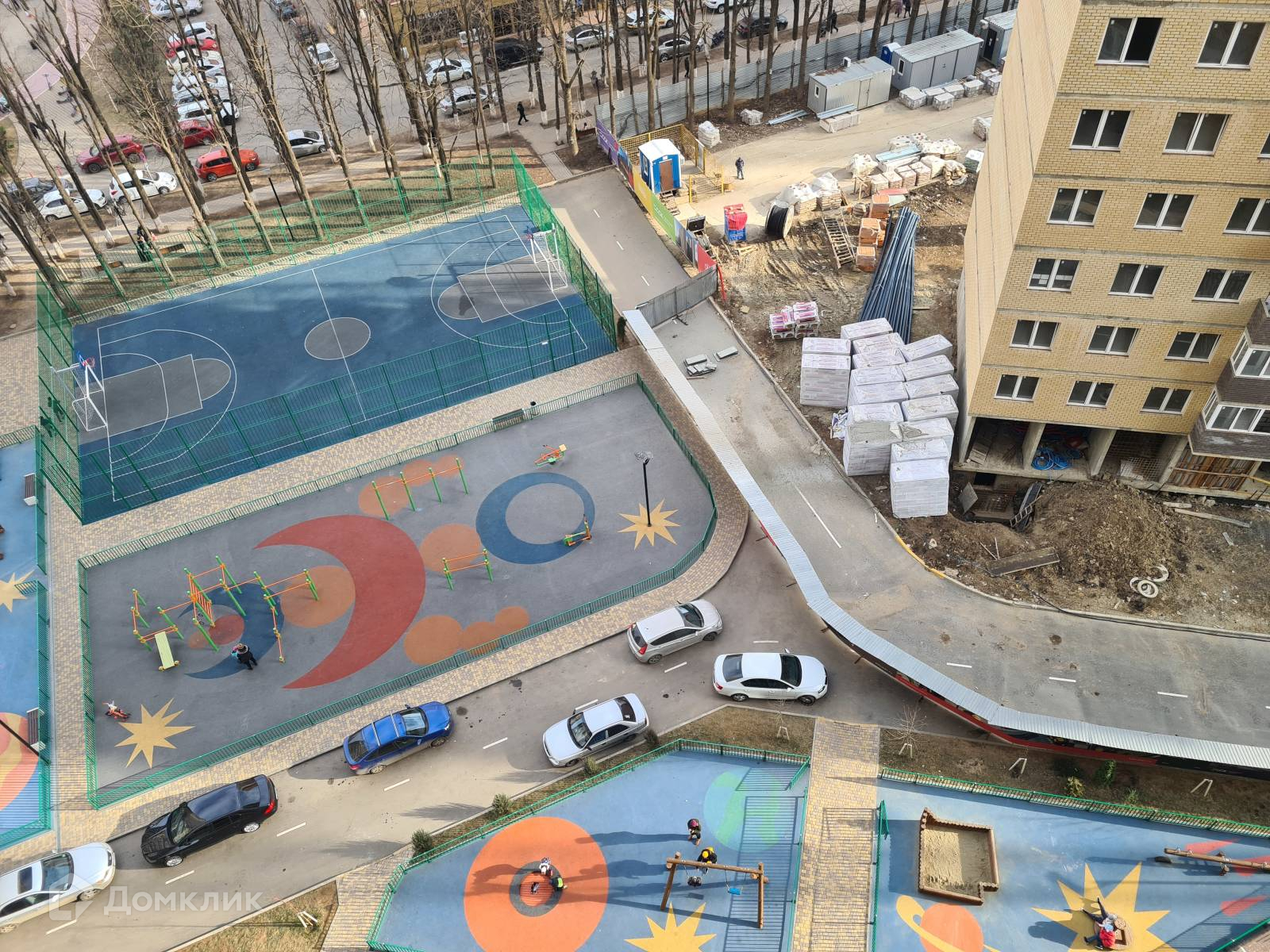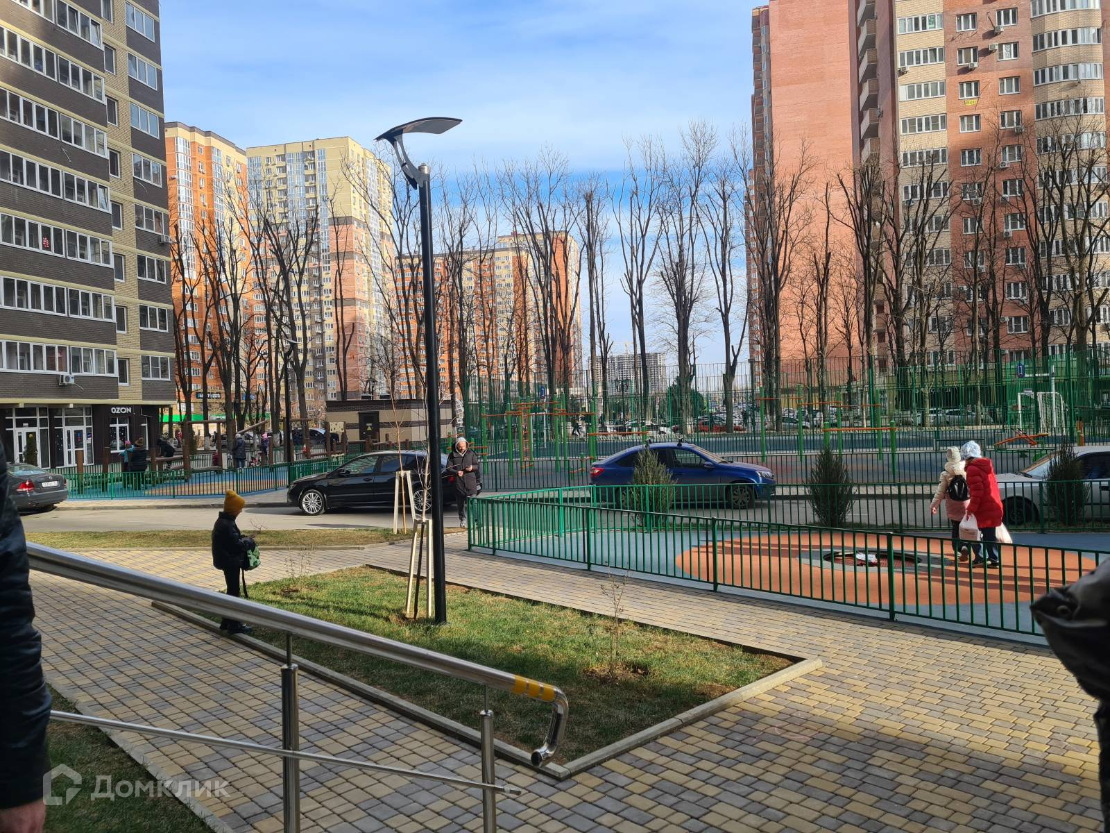 -большая, огороженная детская площадка,