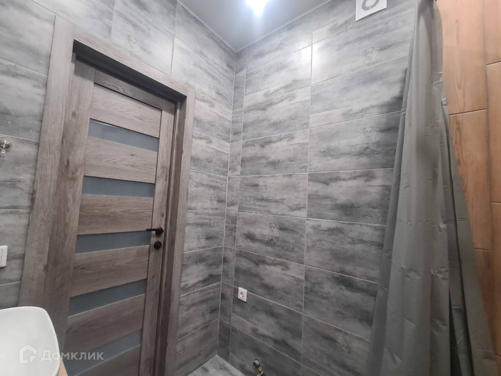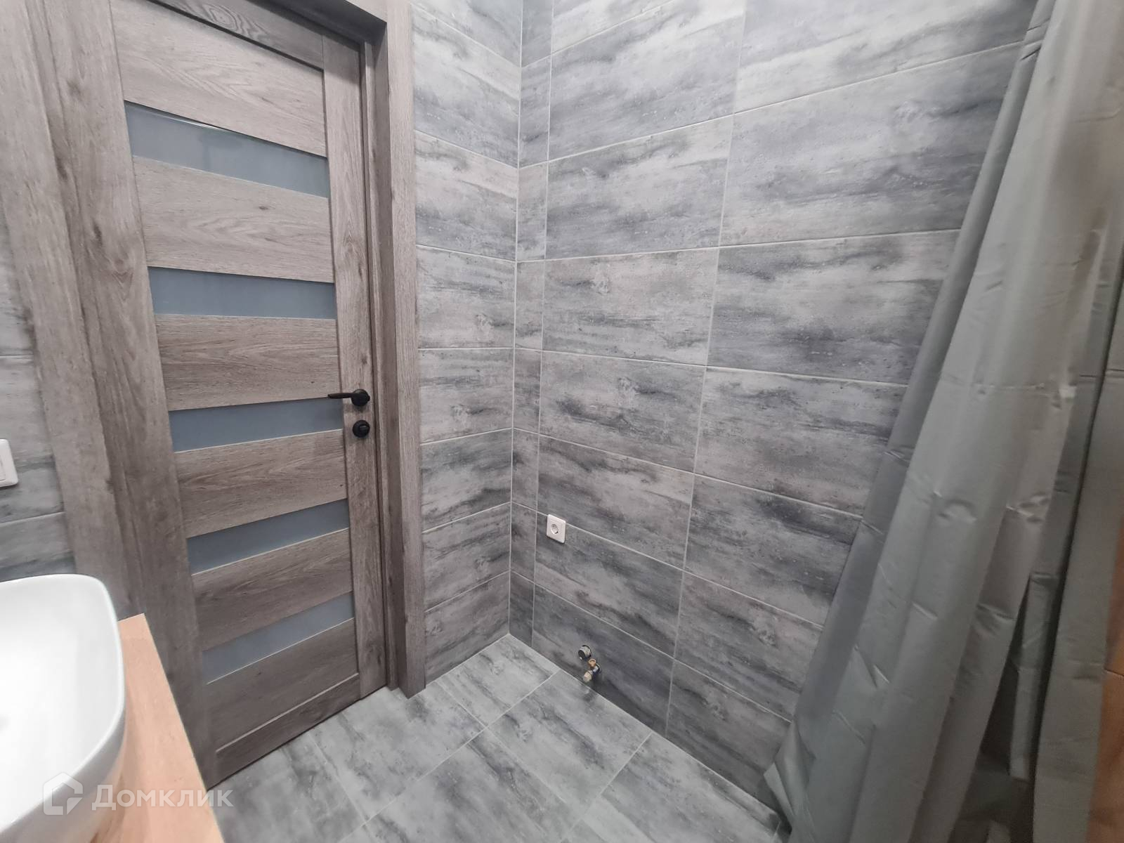 - в ванной современный кафель с сантехникой,
