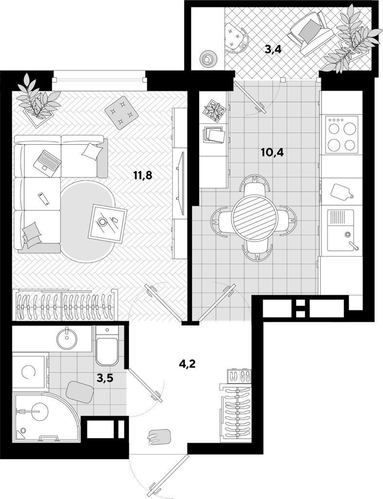 Площадь кухни 10.4 м2