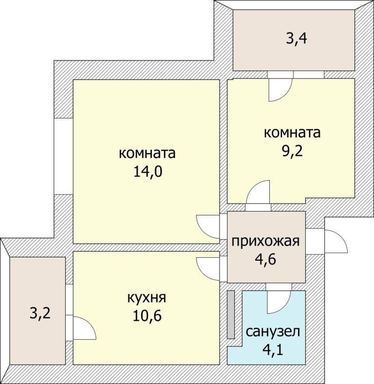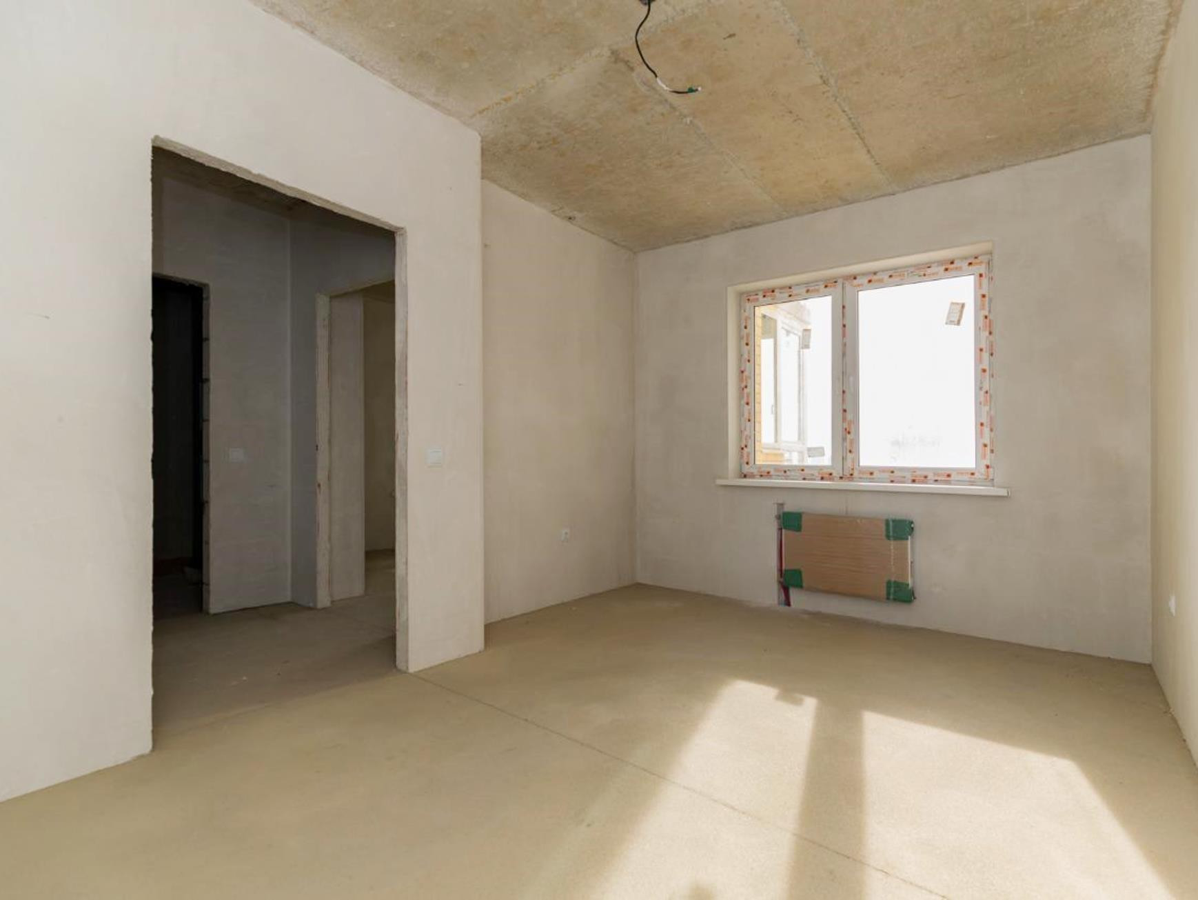 Площадь квартиры с учетов холодных помещений 45,6 кв.м. Сделана качественная предчистовая отделка, готова разводка электричества., установлены радиаторы отопления, счётчики потребления коммуникаций, металлопластиковые окна и входная дверь.