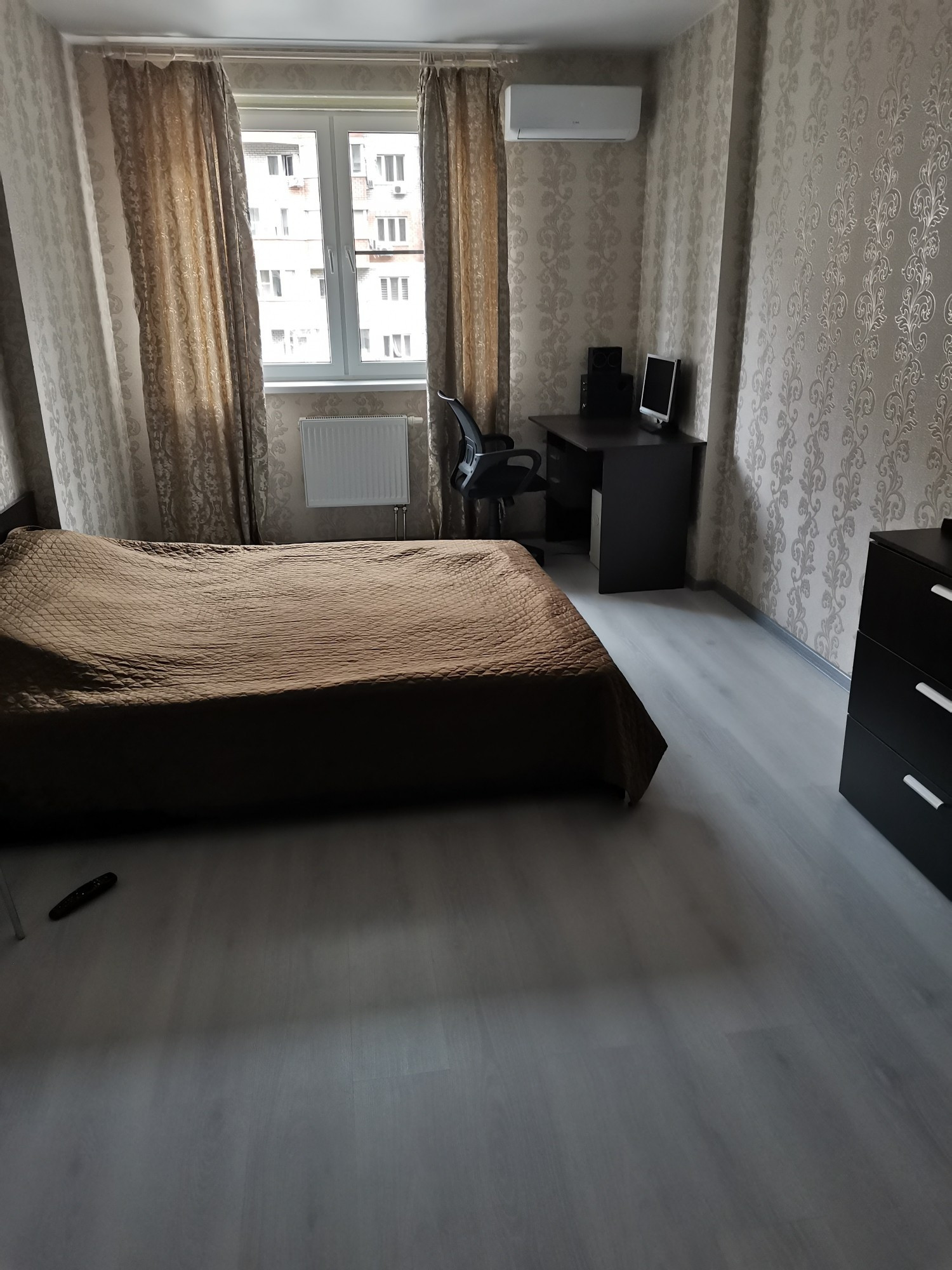 . Продается просторная квартира с 2 балконами, евро трешка, с ремонтом, мебелью (3 шкафа, 2 дивана, кровать, стол кухонный со стульями, компьютерный стол с креслом, комод) , бытовой техникой (холодильник LG, микроволновка , телевизор, стиральная машина, две сплит системы) . Большая парковка во дворе, детские площадки, спорт площадка, фантан, мангальная зона, всё необходимое в шаговой доступности.