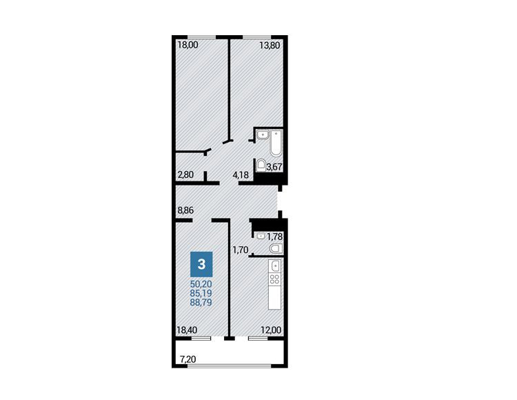 Количество комнат 3