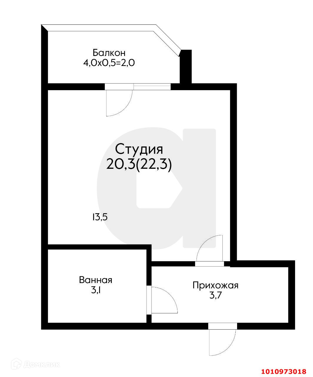 Общая площадь 22.3 м2