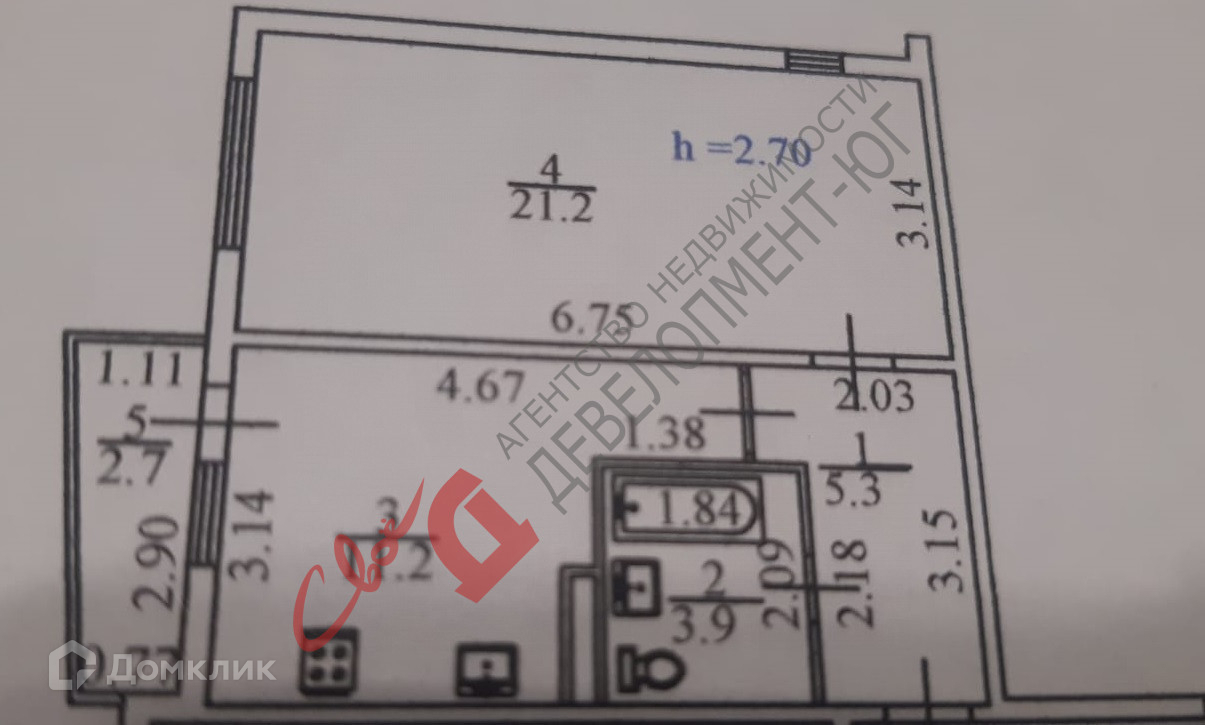 Жилая площадь 21 м2