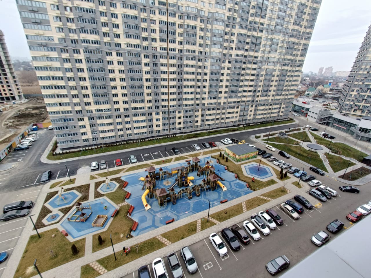 Современный жилой комплекс со своей инфраструктурой, спортивными и детскими площадками, всеми необходимыми магазинами, прогулочные зоны. Комплекс с закрытой территорией, видеонаблюдение. Удобный выезд из города, в 5мин езды трк ОЗ МОЛЛ.
