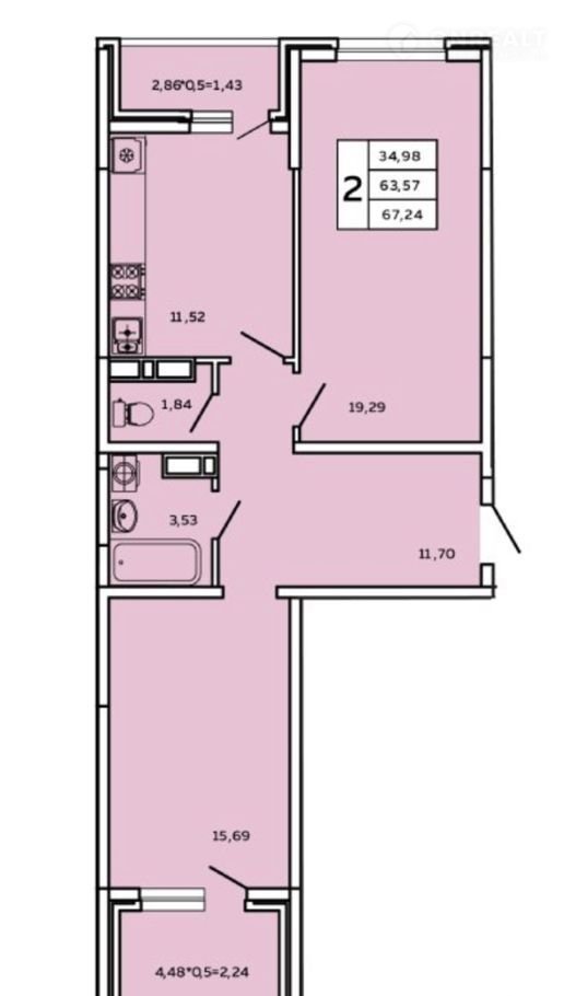 Количество комнат 2