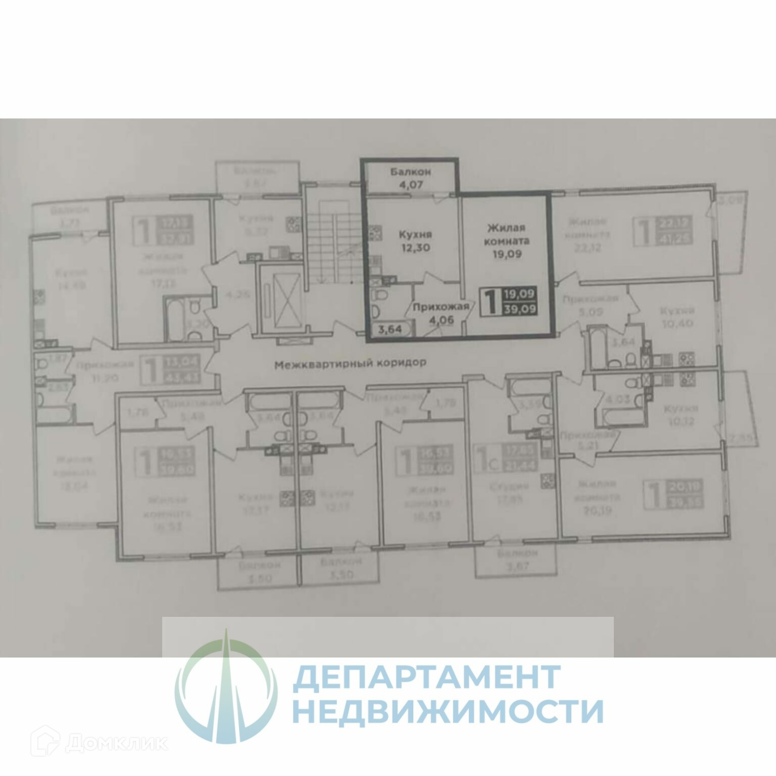Общая площадь 39.09 м2