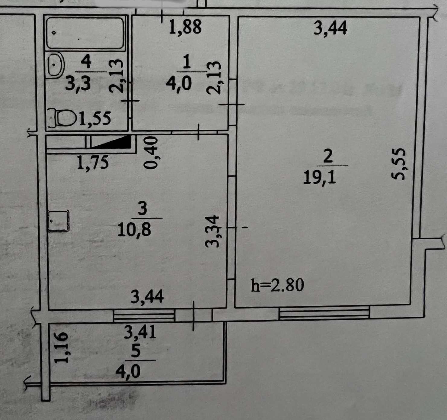 Высота потолков 2.8 м