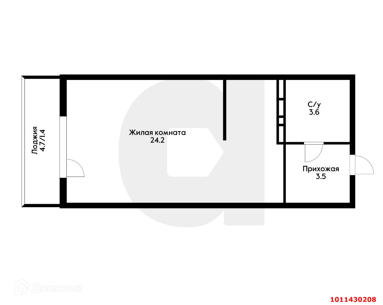 Жилая площадь 24.2 м2