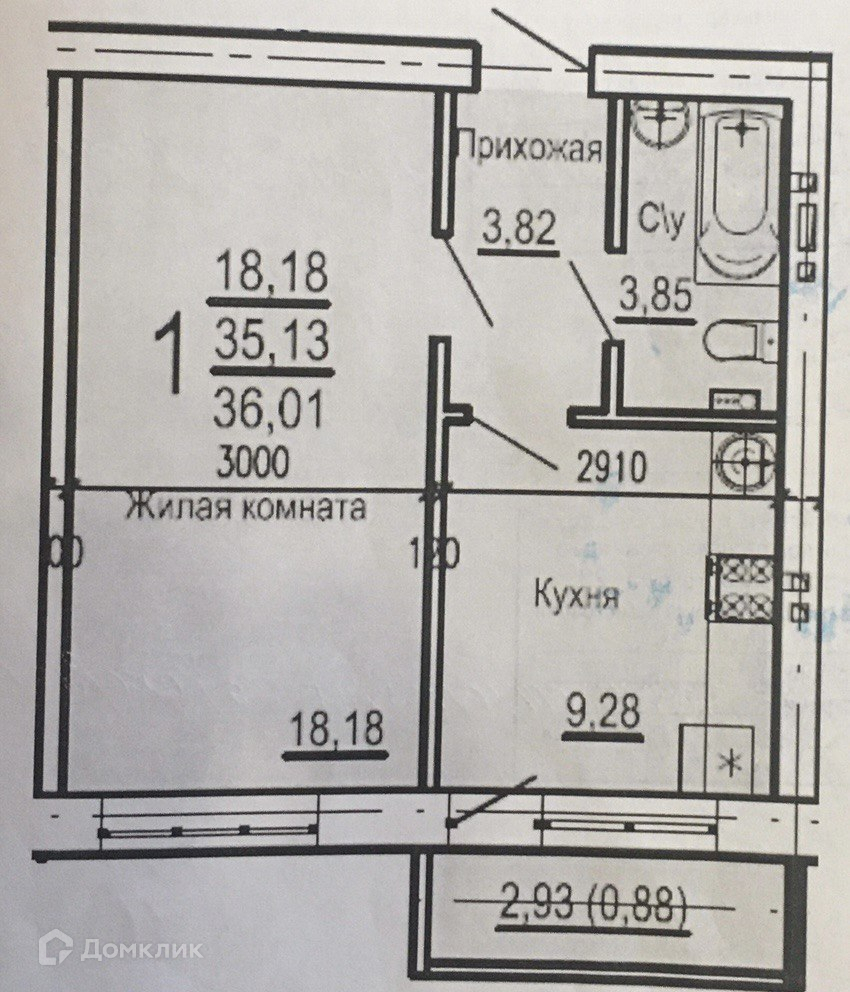 1-комнатная квартира, 36 м2, этаж 2 / 3, на продажу в Краснодаре, 1-й Краснодарский проезд, 2к4