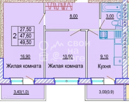 Общая площадь 49 м2