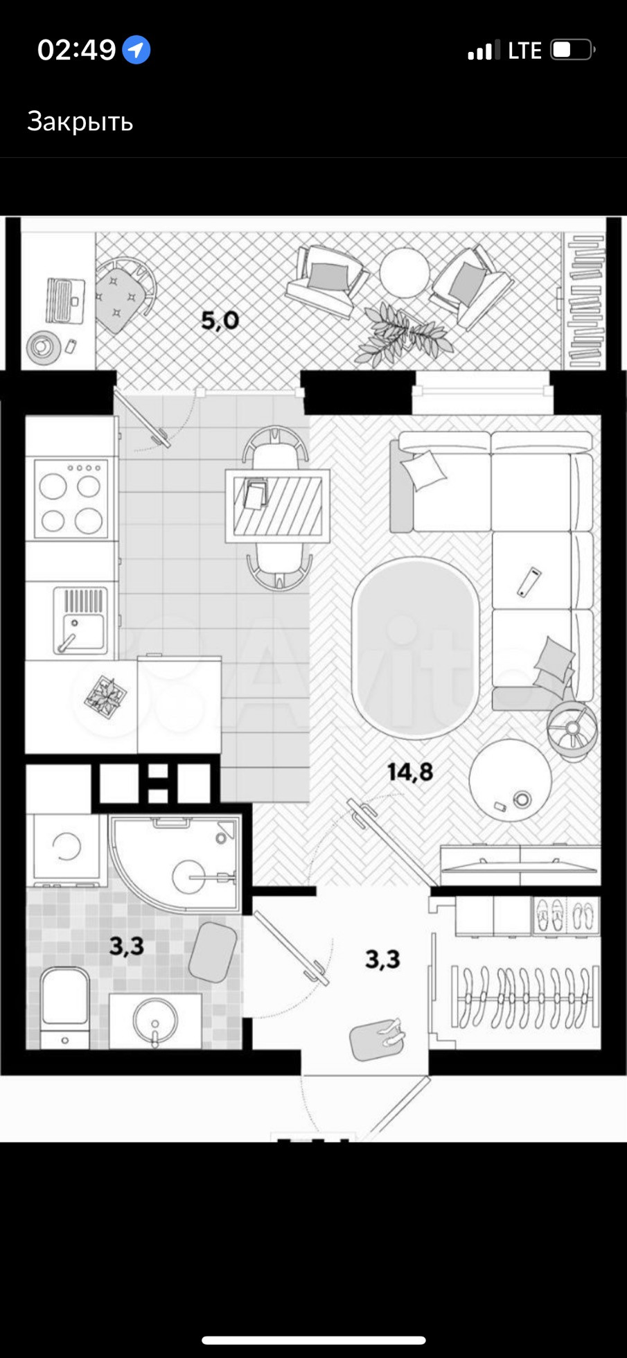 Общая площадь 26.4 м2