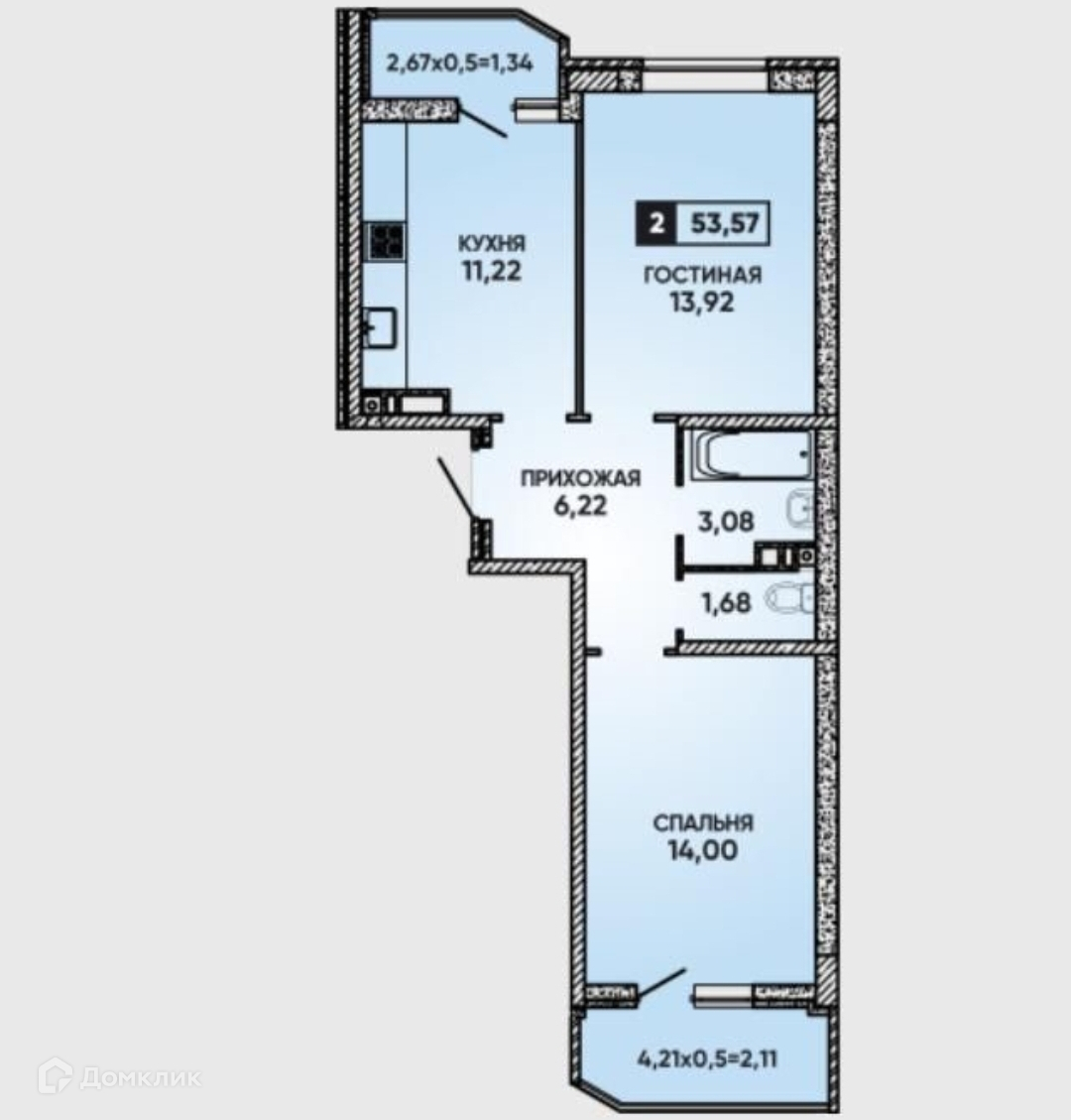 Общая площадь 54 м2