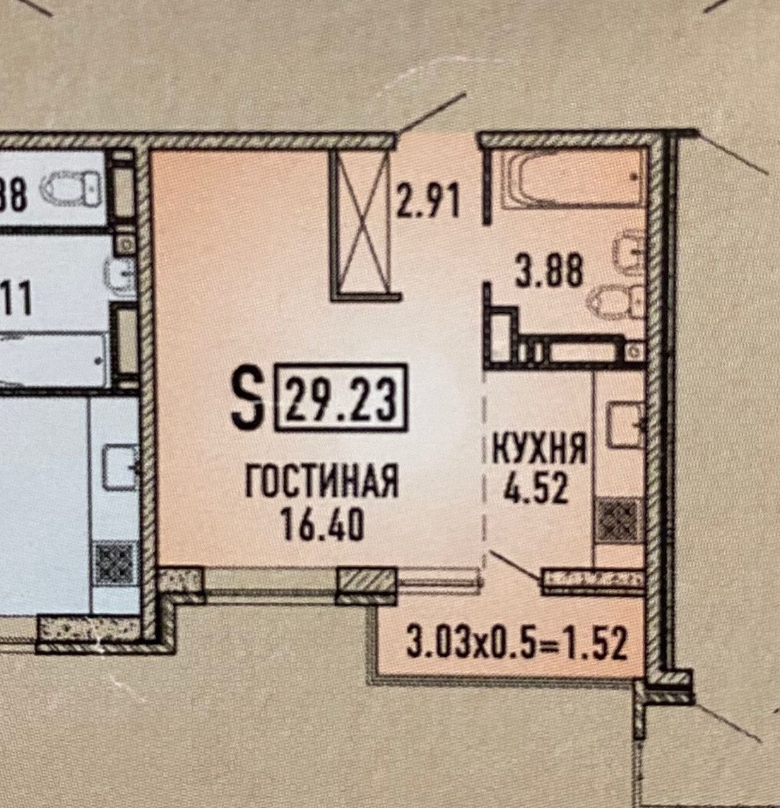 Балкон, лоджия 1 балкон