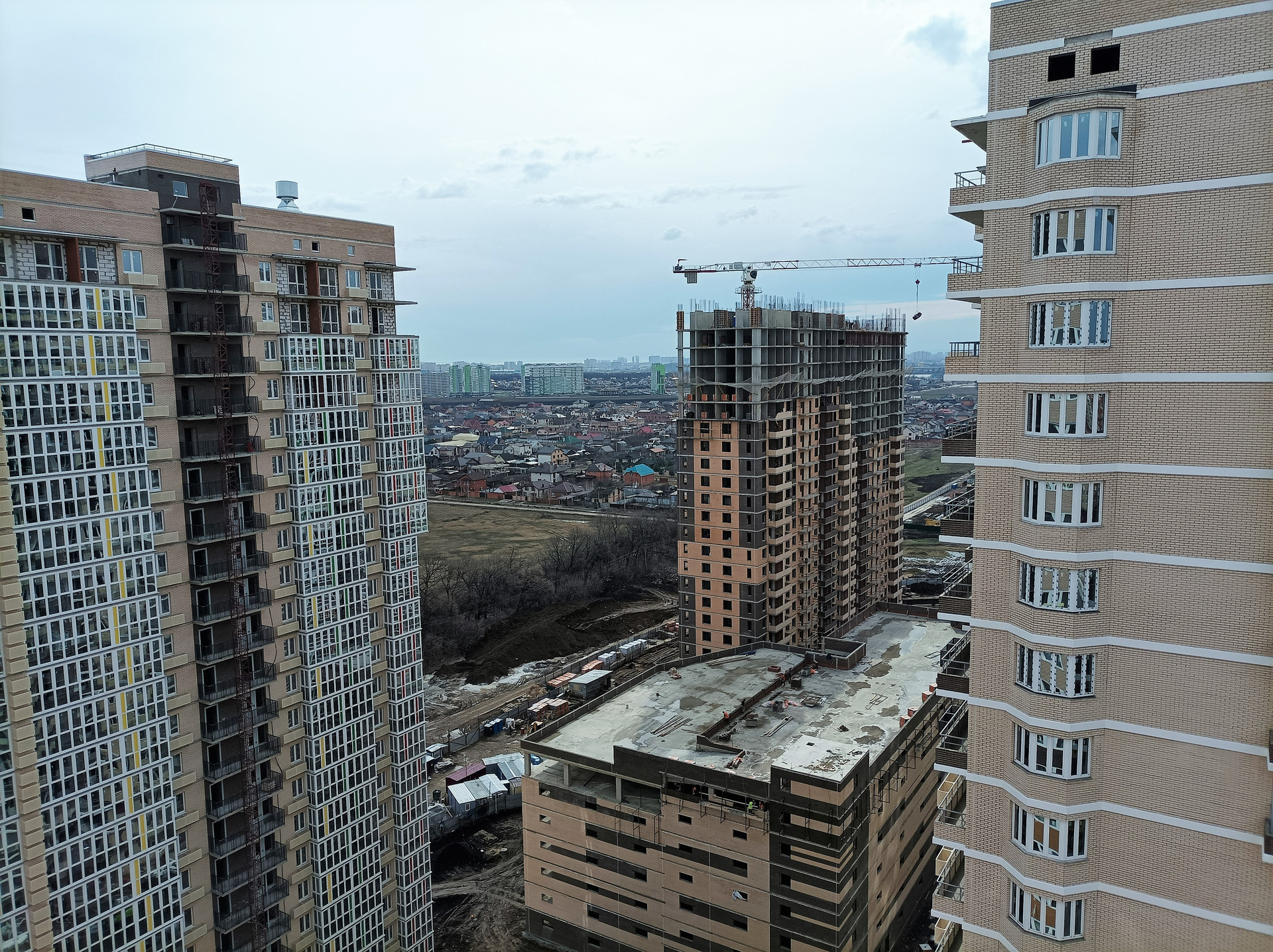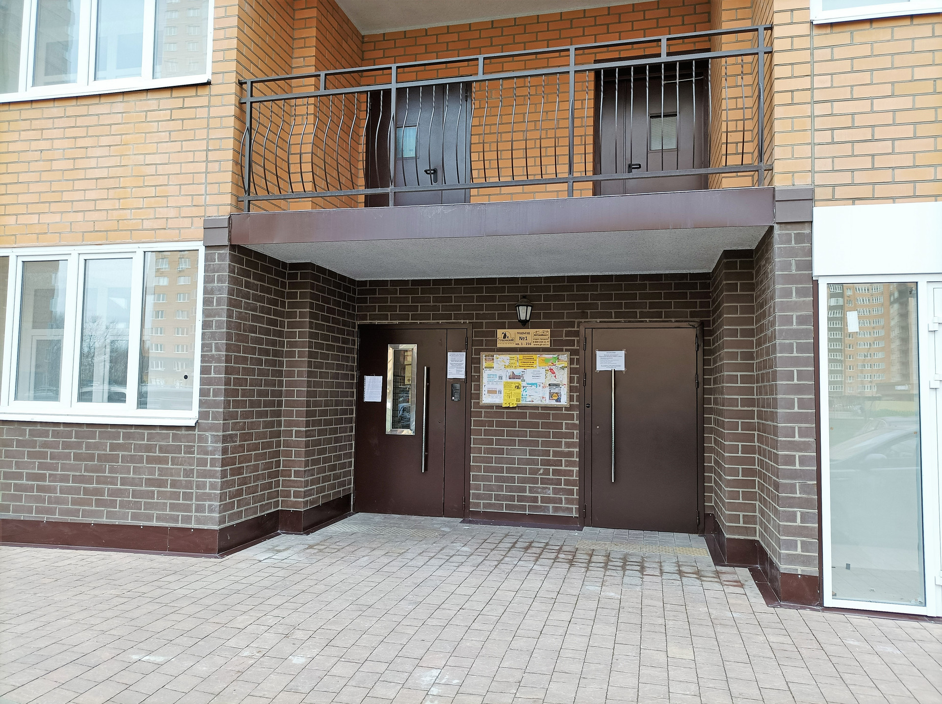 Монолитно - кирпичный каркас с отделкой фасадным кипричом, 3 лифта.