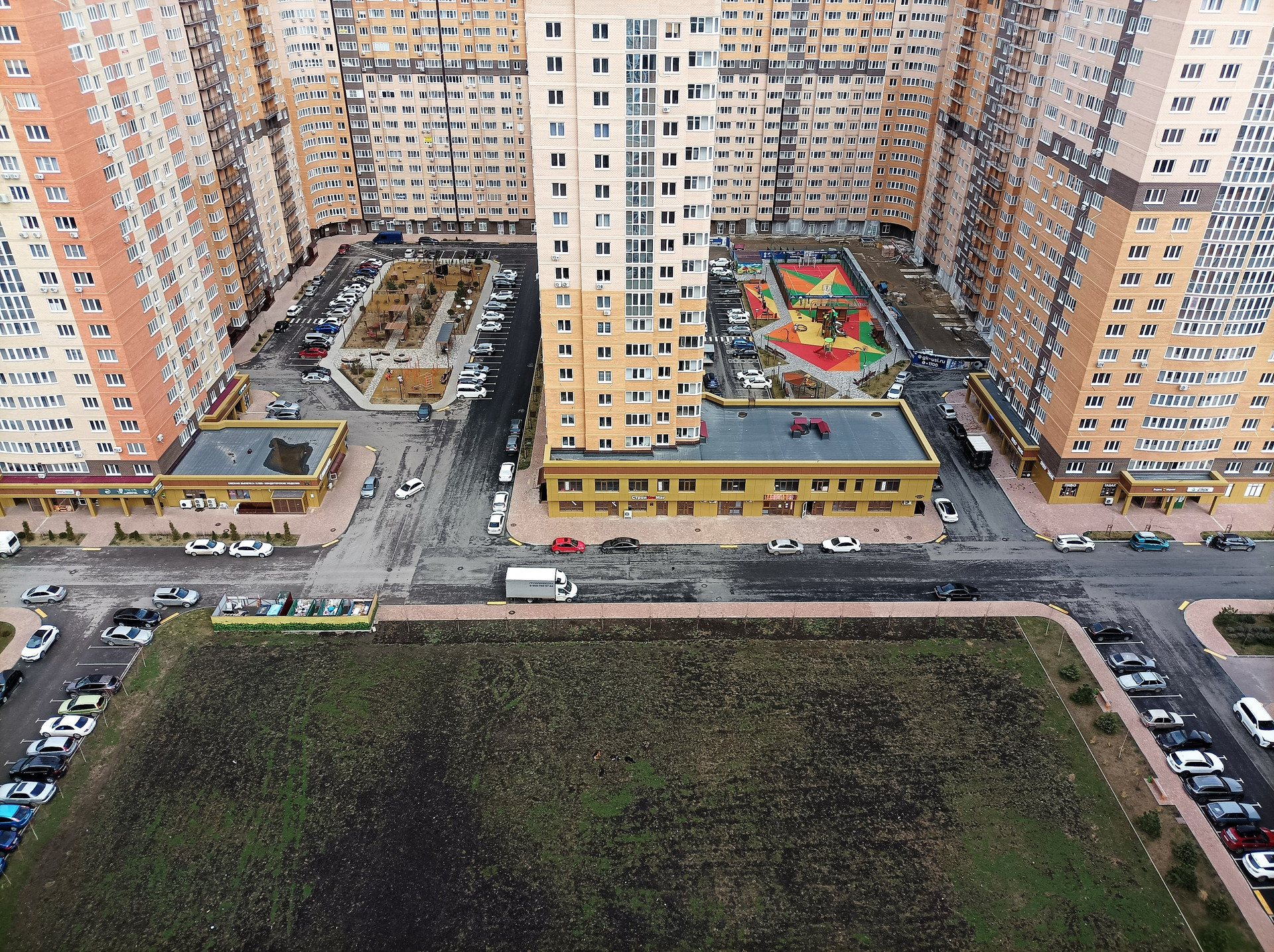 Просторная парковка во дворе.