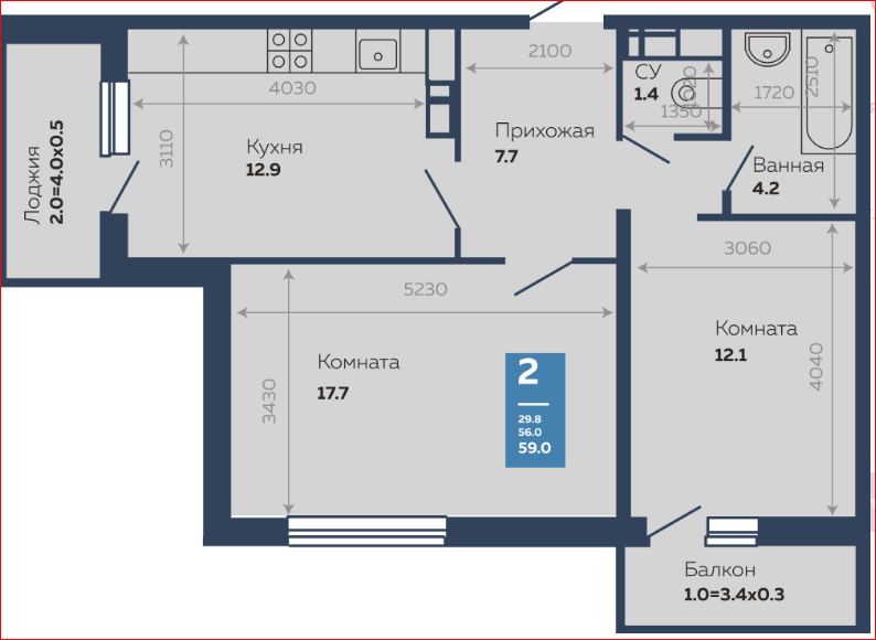 Количество комнат 2
