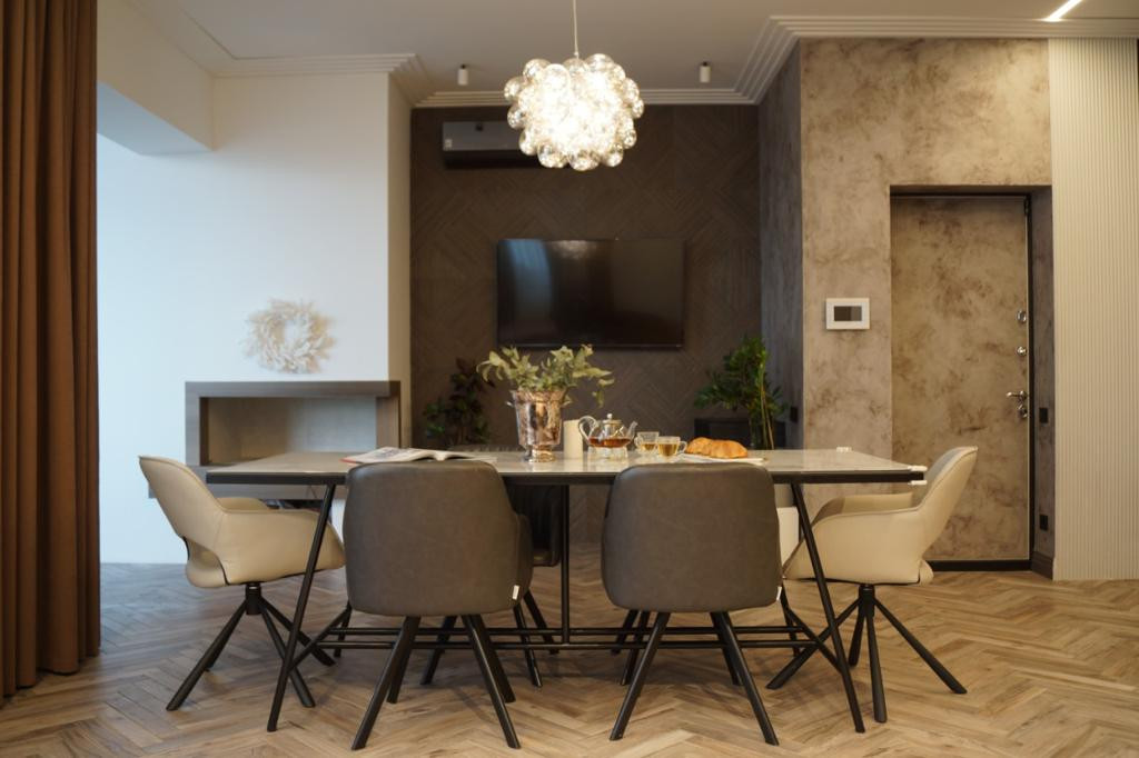 В квартире продумана каждая мелочь. (Электрические карнизы, биокамин, встроенное освещение). Установлены системы видеонаблюдения, протечки воды, пожарная и против взлома.