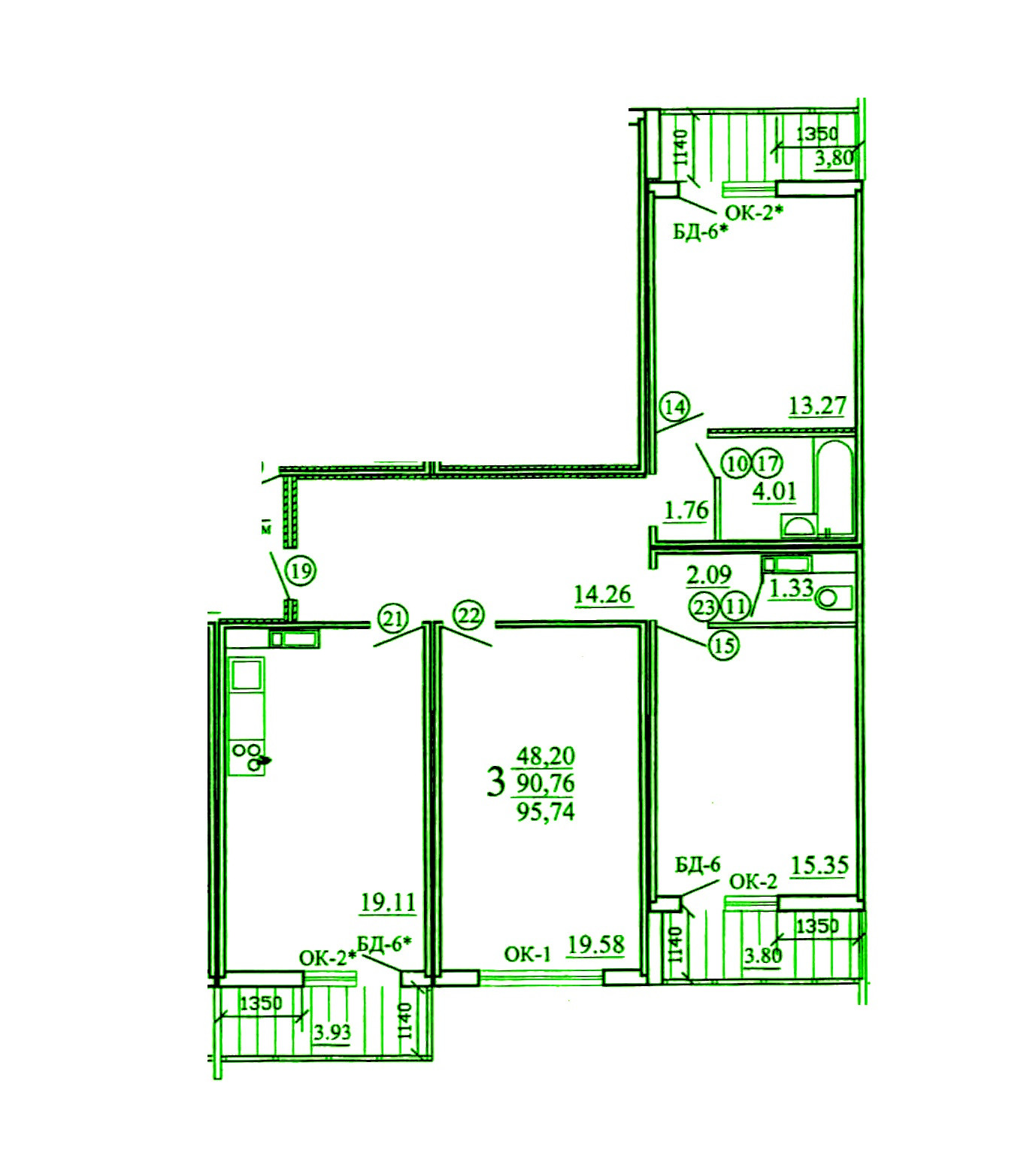 Общая площадь 96 м2