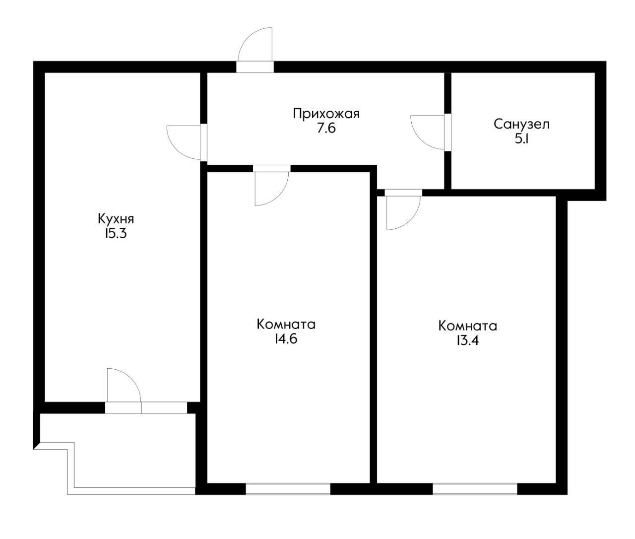 Общая площадь 55.8 м2