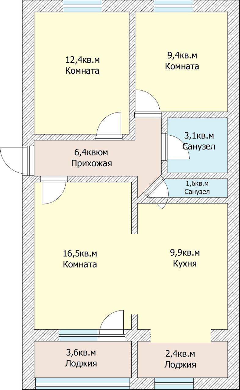 Общая площадь 61.5 м2