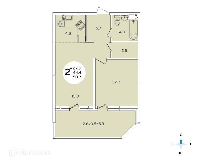 Общая площадь 50.7 м2