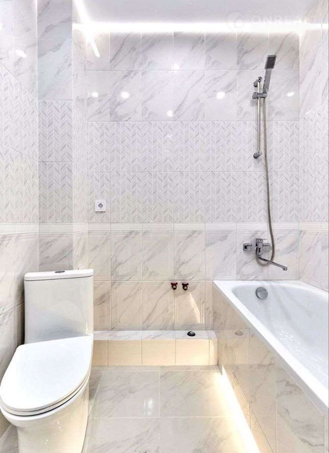 Уютная ванная комната под белый мрамор,имеет два сценария освещения,белый свет для утреннего пробуждения и подсветка для вечернего релакса,эффект пярящей ванной.