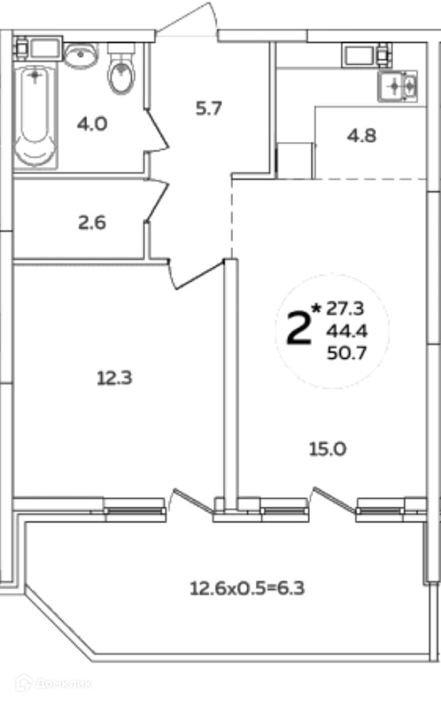 Балкон, лоджия 1 балкон