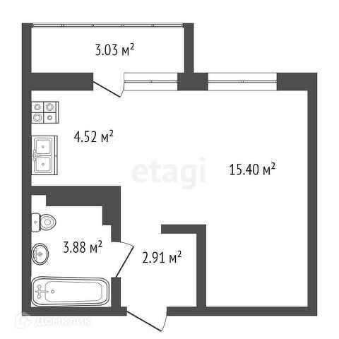 Квартира студия, 27.8 м2, этаж 16 / 24, на продажу в Краснодаре, Боспорская улица, 4
