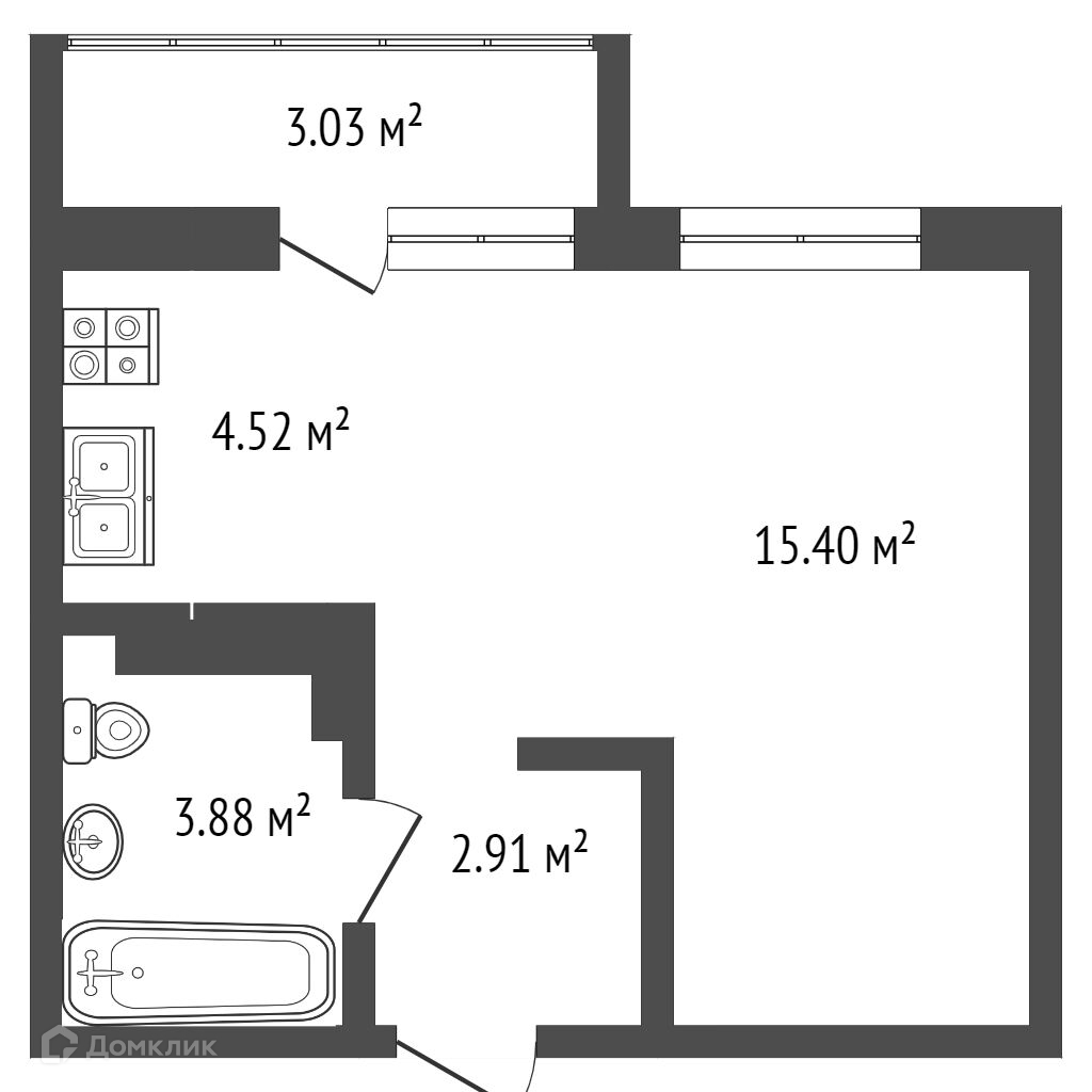 Общая площадь 27.8 м2